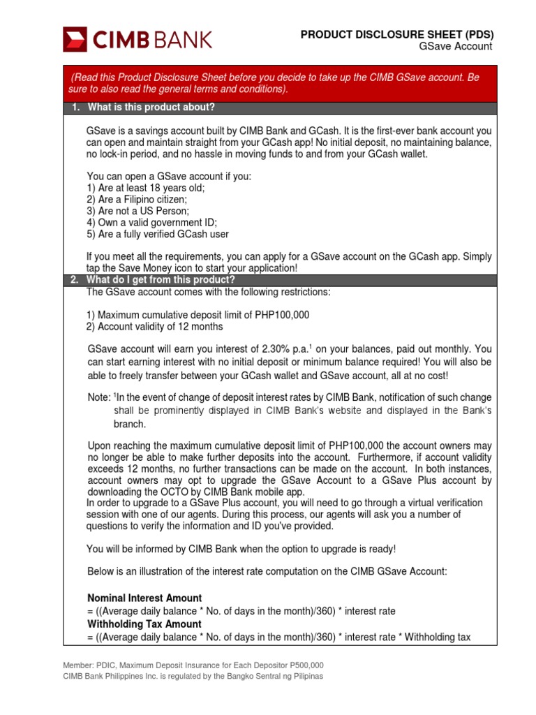 Cimb Bank Ph Pds Gsave Account 14022019 Pdf Deposit Account Fee